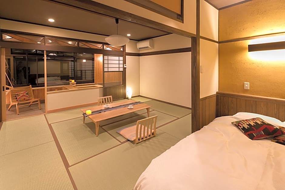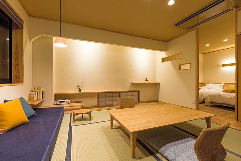 The quadruple room provides air conditioning, tatami, as well as a shared bathroom featuring a bidet and a hairdryer. This quadruple room features a safe deposit box, yukata and a flat-screen TV. The unit offers 4 futons.