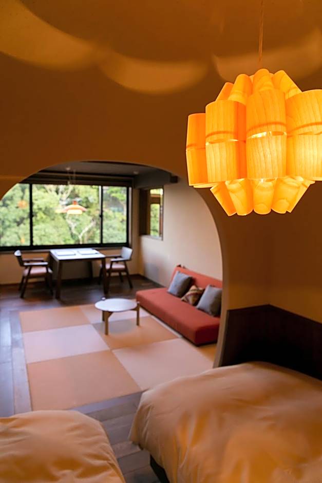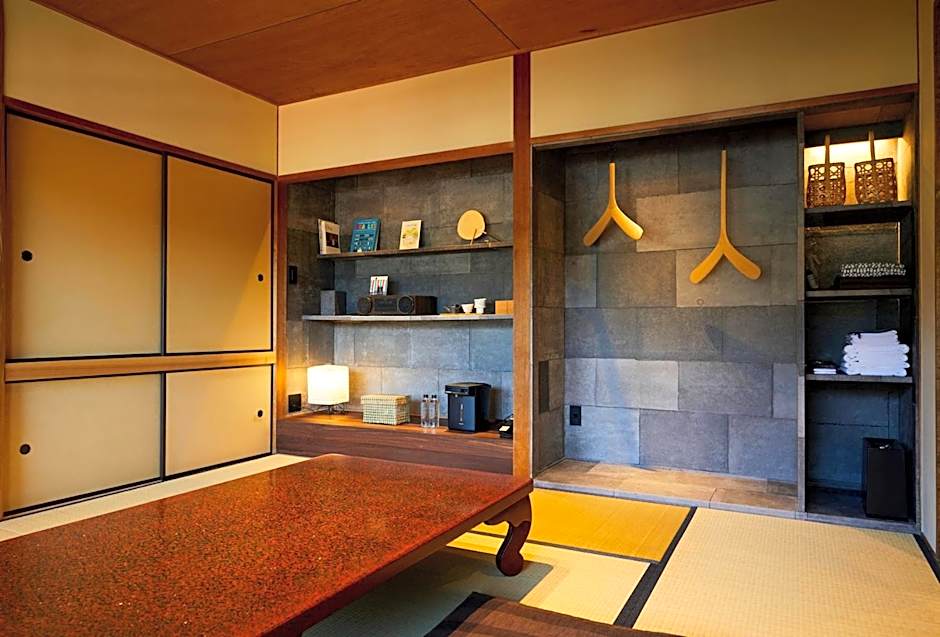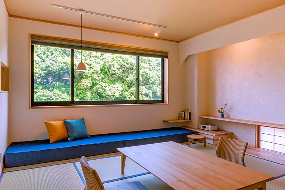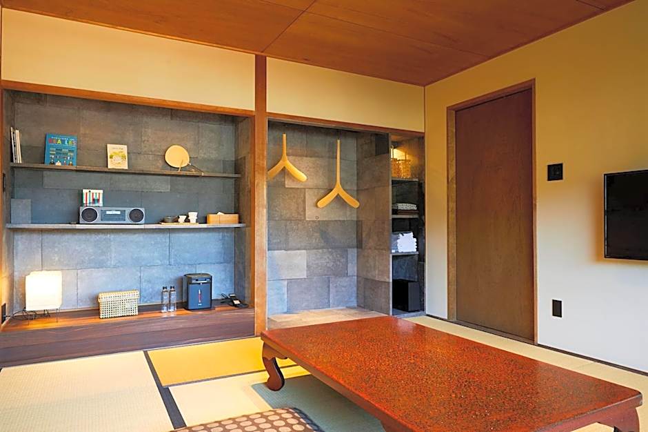 Renovated in 2013, this double room features a Simmons bed, a seating area and air conditioning. The semi-outdoor bath carved out of Japanese cypress is filled with hot spring water taken straight from the hot spring source.